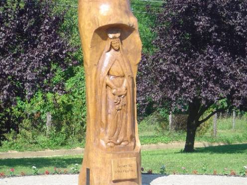 Kissé távolabb a templomtól került felállításra Árpádházi Szent Erzsébet szobra, mely Gazdag Ferenc szentlőrinci szobrász keze munkáját dicséri.